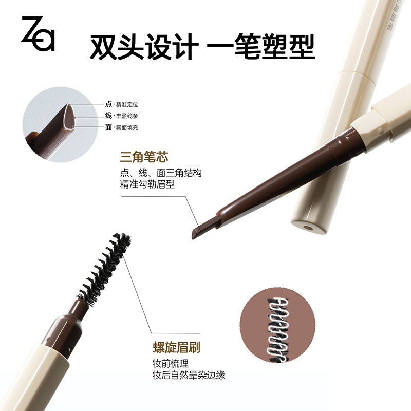 免削三角笔芯搭配螺旋眉刷,点线面精准勾勒质感绒雾眉